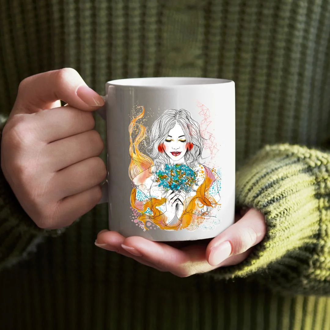 Kubek z autorskim nadrukiem.